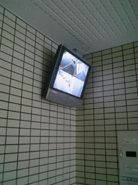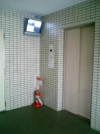 困難な場合もございますので当社ではモニターをエレベーター前の壁や天井に設置し